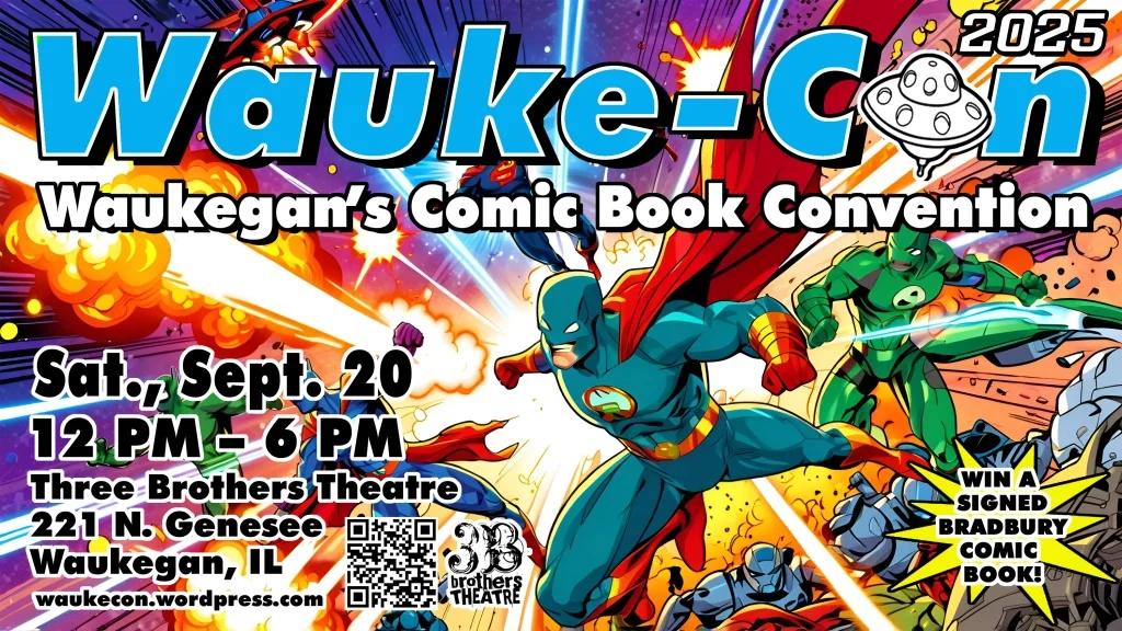 In honor of Ray Bradbury, we put together a comic con in his hometown of Waukegan, IL, a place he immortalized in numerous works, including Something Wicked This Way Comes and Dandelion Wine. Whenever he referred to a place called Green Town, IL, he was thinking of Waukegan. A comic book convention is perfect tribute to the life-long fan. He not only attended the very first San Diego Comic Con in 1970 and went to each one following until his death, he also attended the World Science Fiction Convention in 1939, generally considered the first science fiction convention. He was all of 19 and still just dreaming about becoming a great writer, a dream that has come to pass. We hope you can join us for the next Wauke-Con, September 20th, 2025, from 12-6.